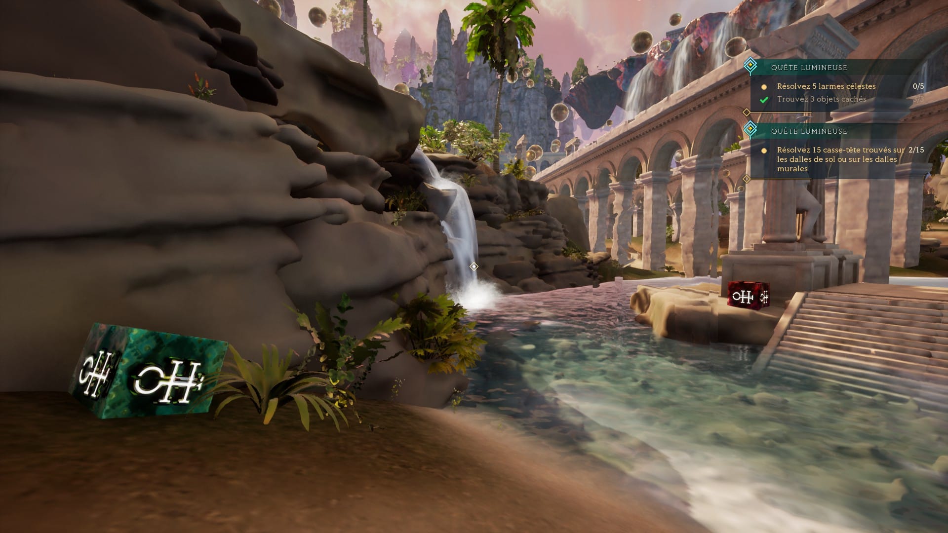 Les puzzles "d'objets cachés", comme l'indique leur nom, vous demandent de trouver des cubes, des arches ou des anneaux plus ou moins translucides. Objets cachés et puzzles environnementaux sont une sorte de distraction agréable, des puzzles à picorer quand vous parcourez les continents. Certaines enclaves leur sont aussi dédiées.